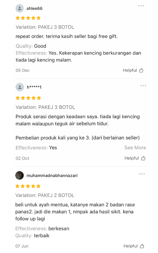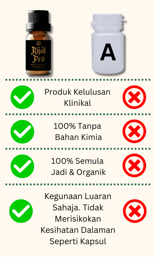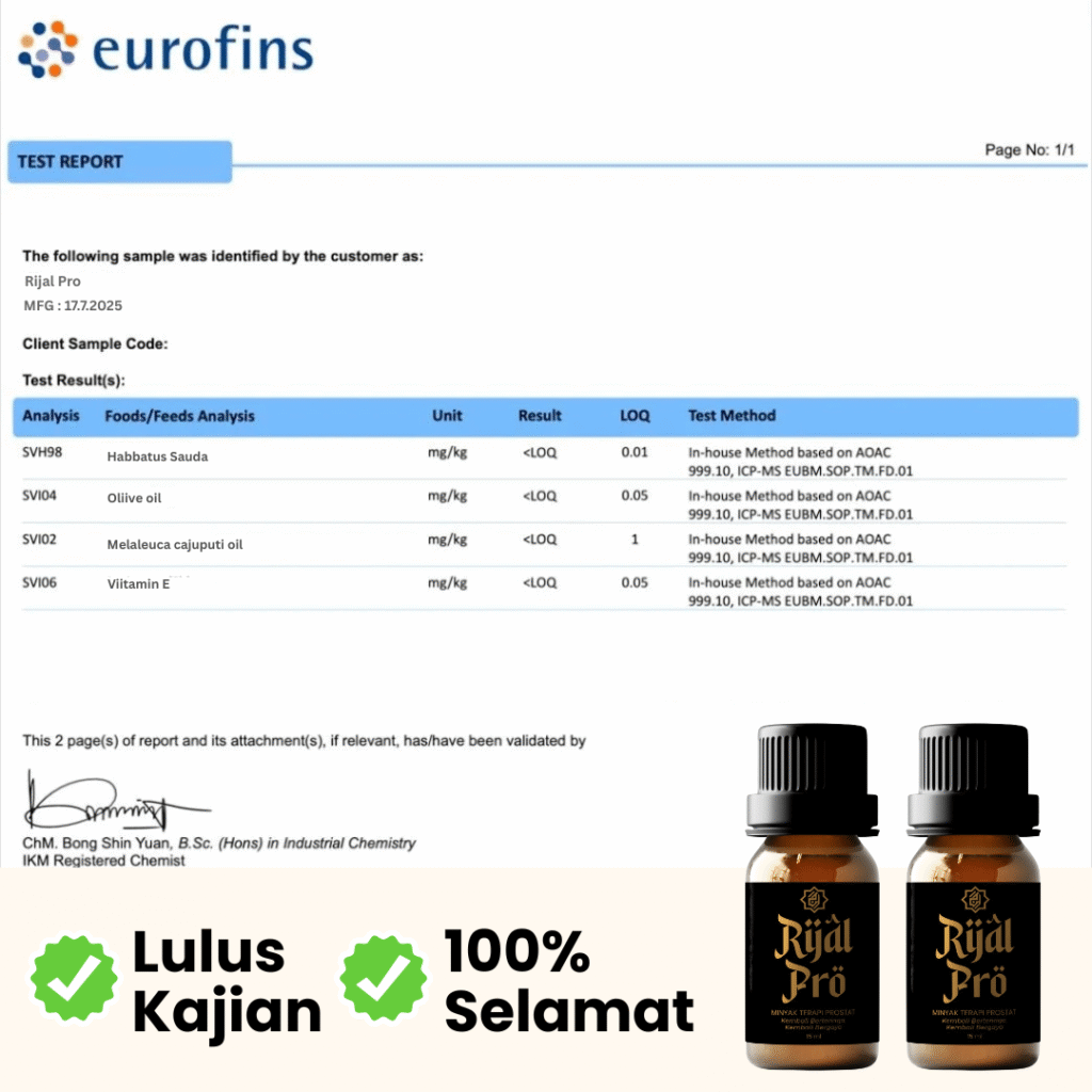 Produk ini sesuai untuk lelaki yang alami masalah kencing tak lawas, lemah tenaga batin & bengkak prostat.