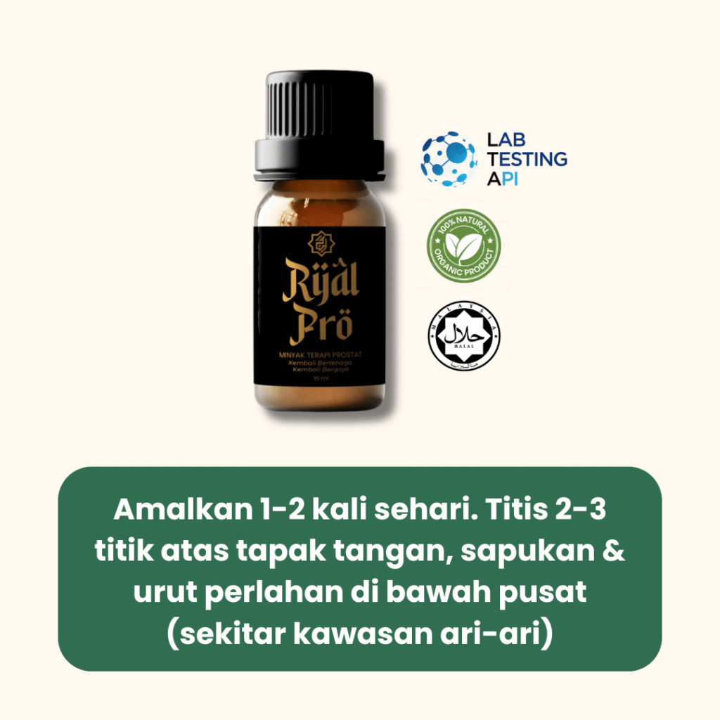 Minyak Rijal Pro - Sapuan Herba Luaran bantu kecutkan lancarkan pengeluaran air kencing, melancarkan proses kencing & legakan tekanan di bahagian bawah perut. 100% Herba Semula Jadi.